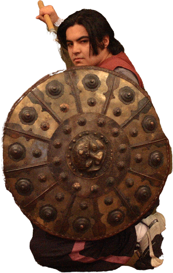 With the rise of cavalry during the Western Han Dynasty (206 - 9 CE) an oblong shield appeared that soldiers could hold one handed. It was bound to the left forearm of mounted soldiers. With time and experience the shield changed shape in many ways. Originally it became to circular and the Northern and Southern Dynasty (420 - 588 CE), used a long hexagon. Another Shield Style prevailed with the shield face introverting vertically like a leaf. When in battle, it could either be held, or placed on the ground with the support of a stick and other shields, forming a sort of Shield Wall.
